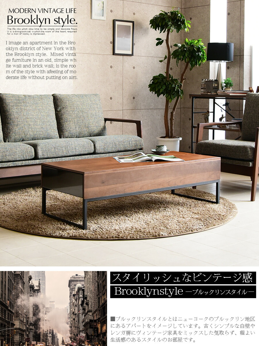 楽天市場 割引 クーポン 配布中 センターテーブル 1cm 引出し 北欧 木製 ビンテージ風 脚 付き おしゃれ リビング ブルックリンスタイル ウォールナット デザイン モダン シンプル 家具の杜